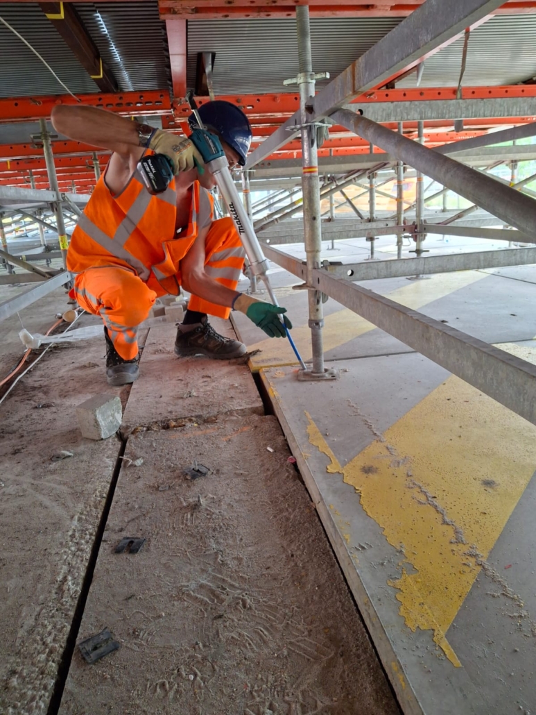 Bij voegovergangen is een sterke en betrouwbare verankering van betonijzer essentieel voor de constructieve verbinding tussen oude en nieuwe betondelen. PROFAST Ankersystemen verzorgt het boren, verlijmen en testen van betonstaal in deze kritische zones. Met hoogwaardige injectiemortels en mobiele testapparatuur zorgen wij voor optimale hechting en aantoonbare trekkracht. Onze gecertificeerde uitvoerders garanderen een veilige, duurzame verbinding — volledig volgens de geldende normen.